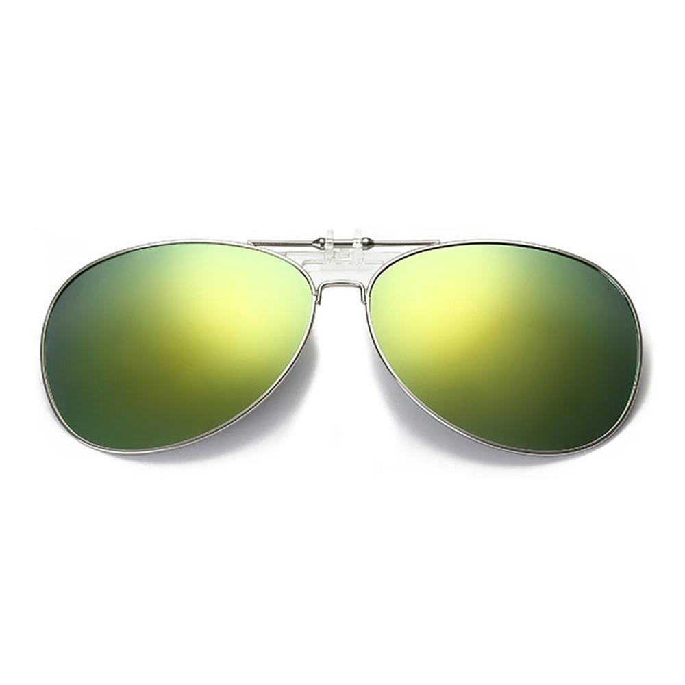 Modellen har grønne linser med guldfarvet spejlrefleks og sølvfarvet stel. Det nyeste inden for clip-on solbriller. Modellen har rigtigt stel og ligner fuldstændig en almindelig solbrille, når du sætter den på. Den er samtidig meget let og passer til langt de fleste briller. Klæder både mænd og kvinder.