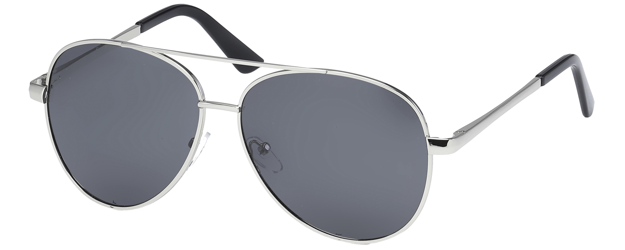 Aviator solbriller i virkelig god kvalitet. Klassisk model som aldrig går af mode. Brillen har sorte linser og stel af sølvfarvet metal.
