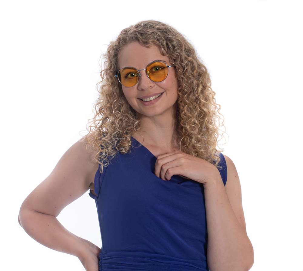 Du får en virkelig high-end gamerbrille i moderne, rundt design og superlækker kvalitet. Stellet er i sølvfarvet metal. Stellet er meget fleksibelt, og passer derfor til de fleste hovedstørrelser.