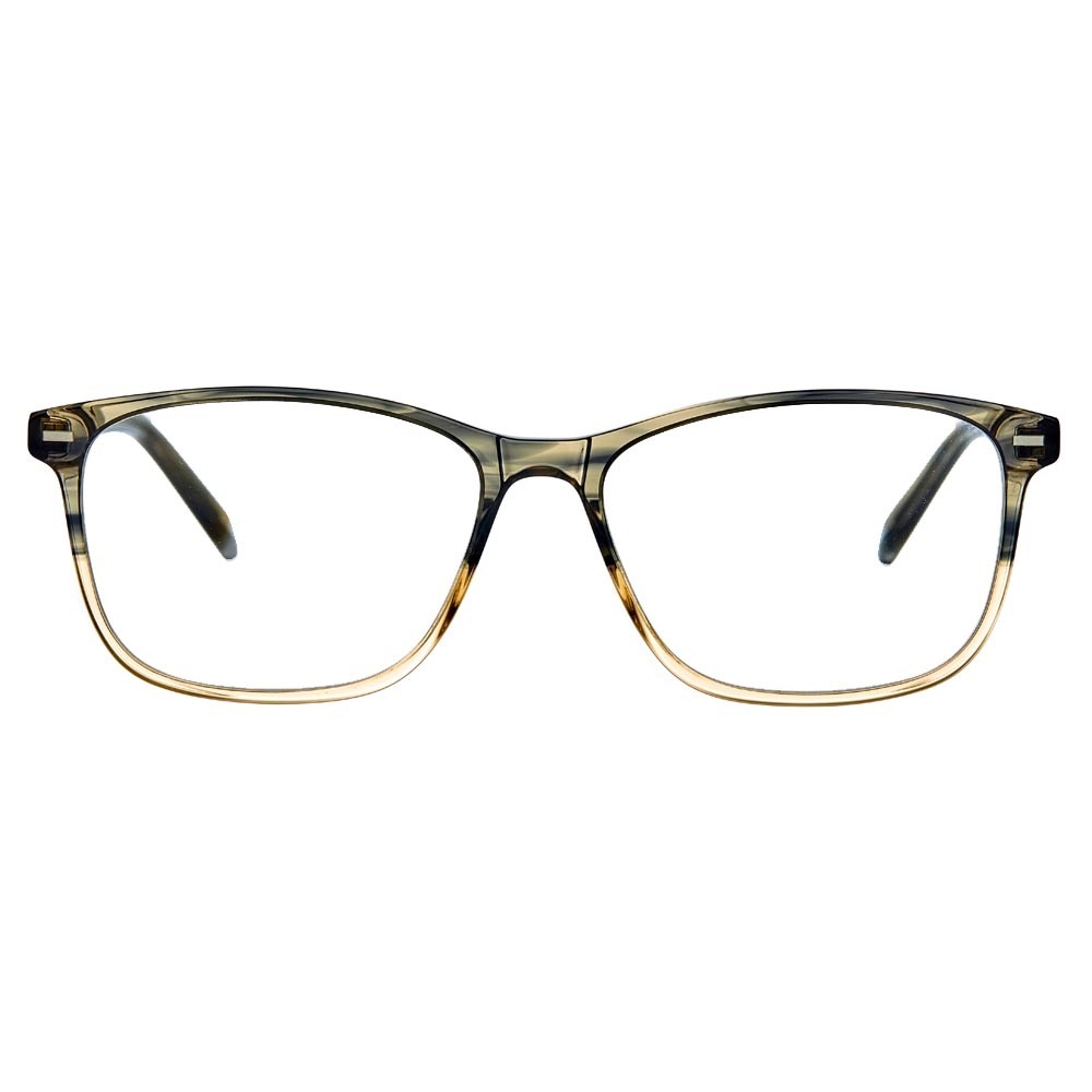 Lækker, klassisk læsebrille i firkantet design. Stellet er udført i et flot to-delt, brunt farvetema fra mørk til lys grøn. Modellen har indbyggede springfjedre, og passer derfor til de fleste hovedstørrelser. Rigtig god kvalitet.