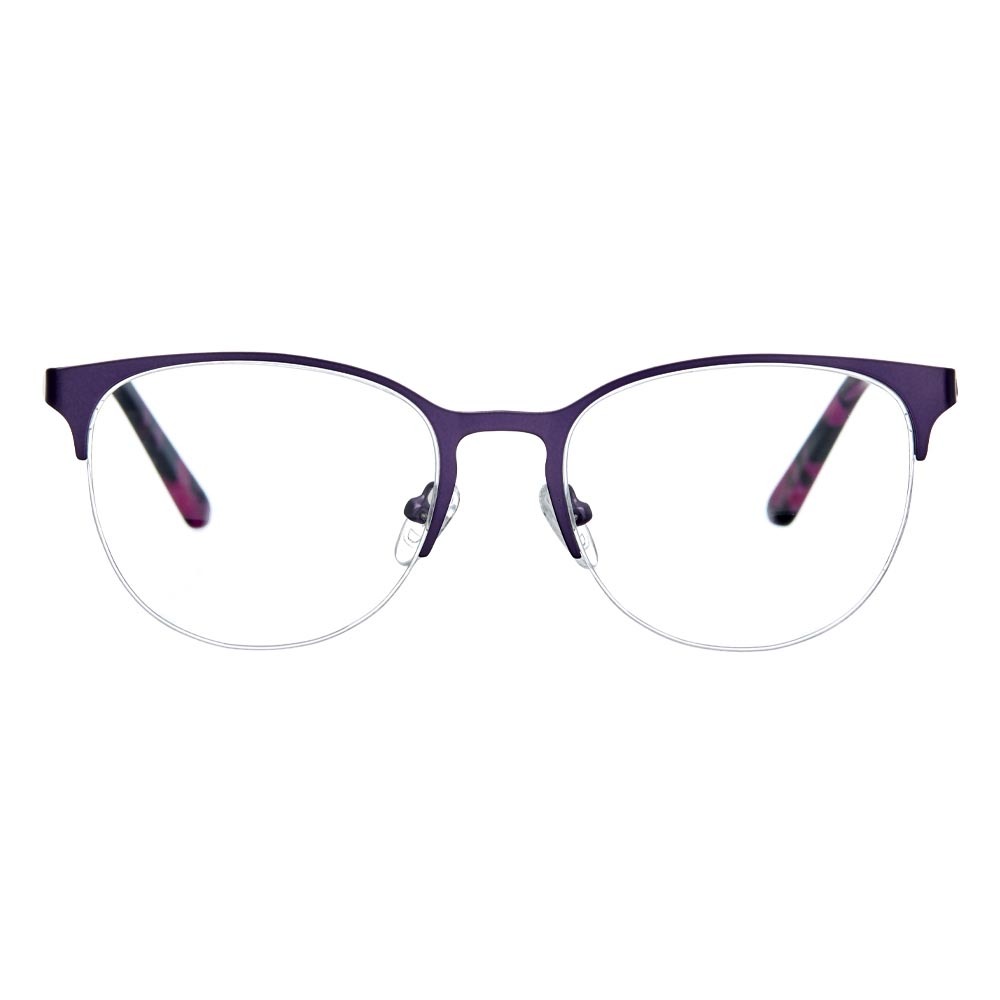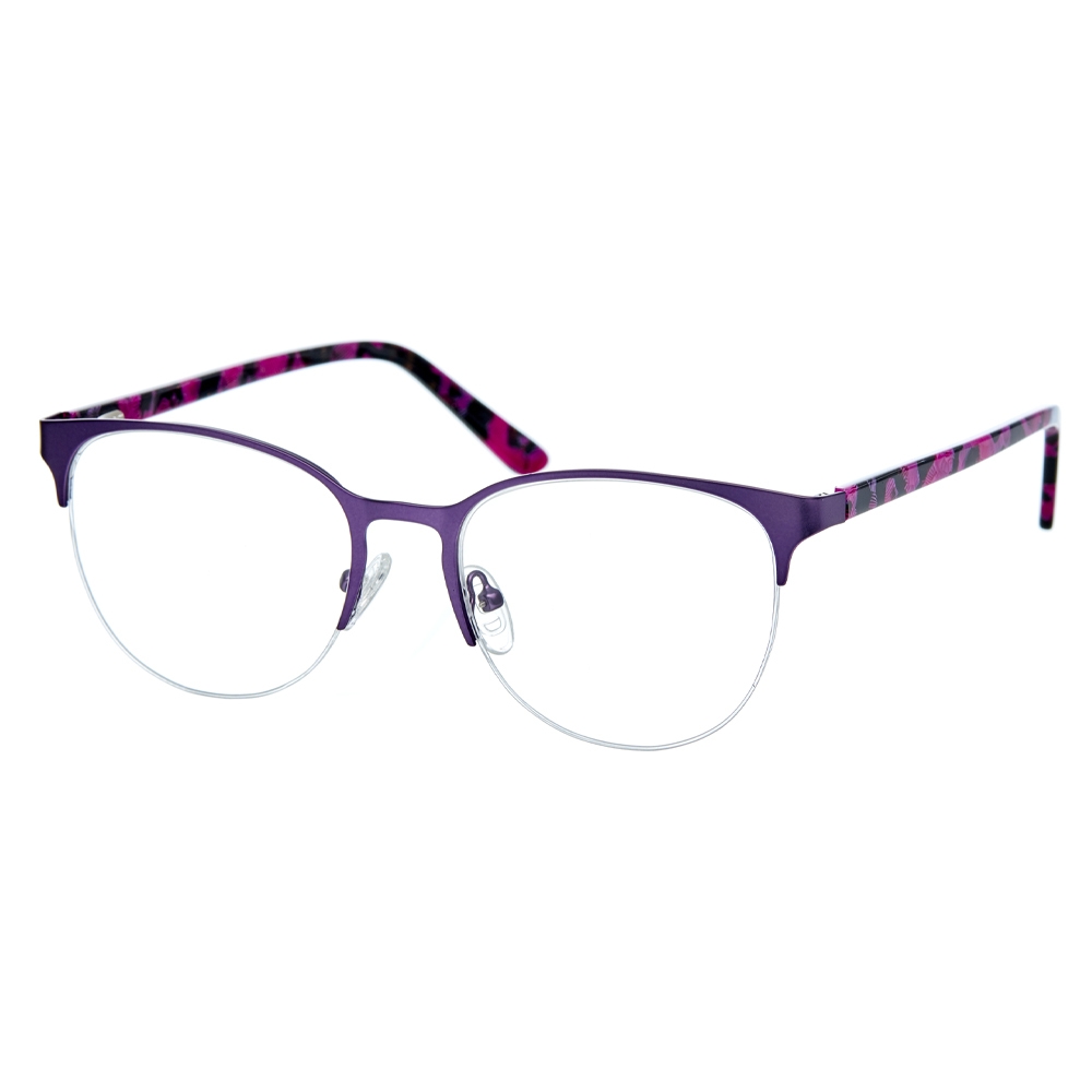 Moderne design med rundt look i metallisk lilla. Stellet er med indbygget springfjedre, er derfor meget fleksibelt, og passer dermed til de fleste hovedstørrelser. Brillen er i rigtig god kvalitet.