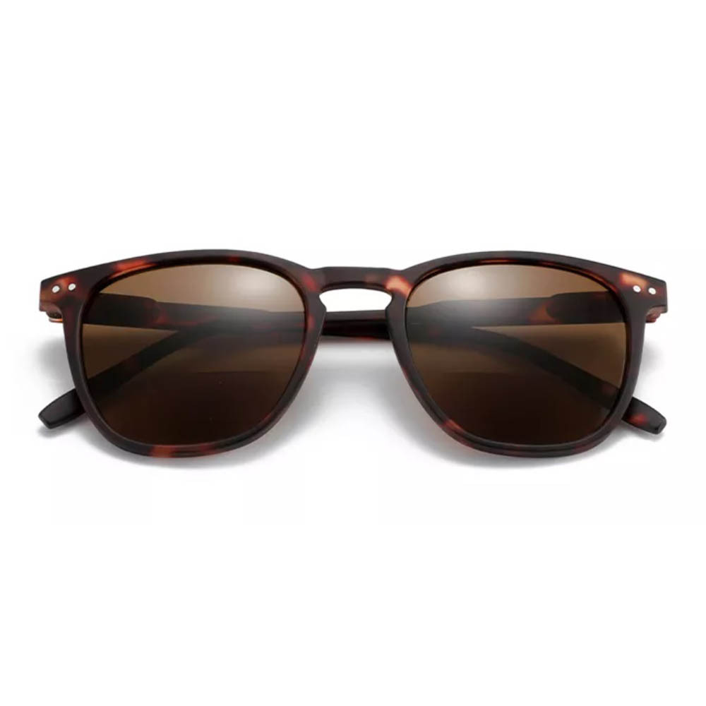 Flot, klassisk solbrille med brune linser og skildpaddebrunt stel. Stængerne er i non-slip for bedre komfort, hængslerne er med fjederfunktion, og brillen passer derfor til de fleste. Linserne er med 100% UV beskyttelse.