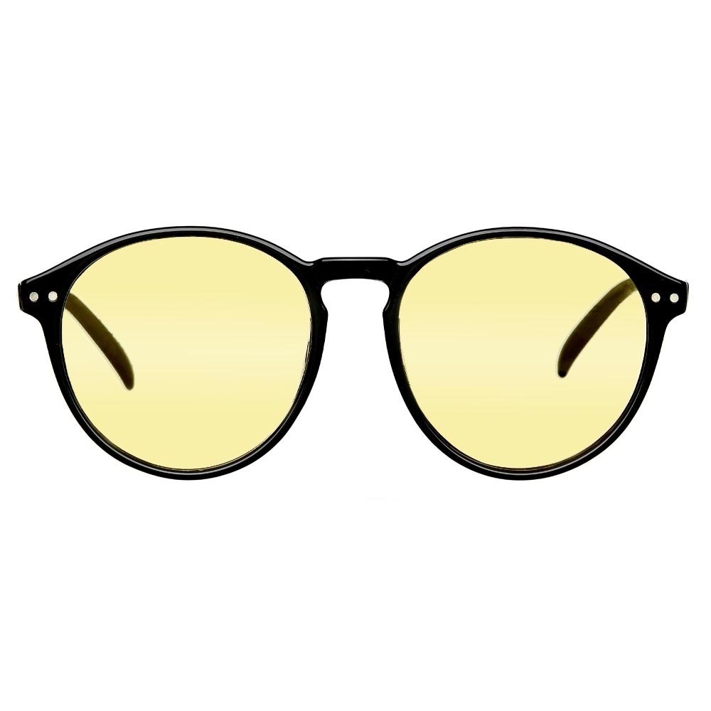 Gamerbriller i flot, rundt design, som er meget moderne. Skåner dine øjne for stråling fra alle slags skærme og skærper kontrasten.