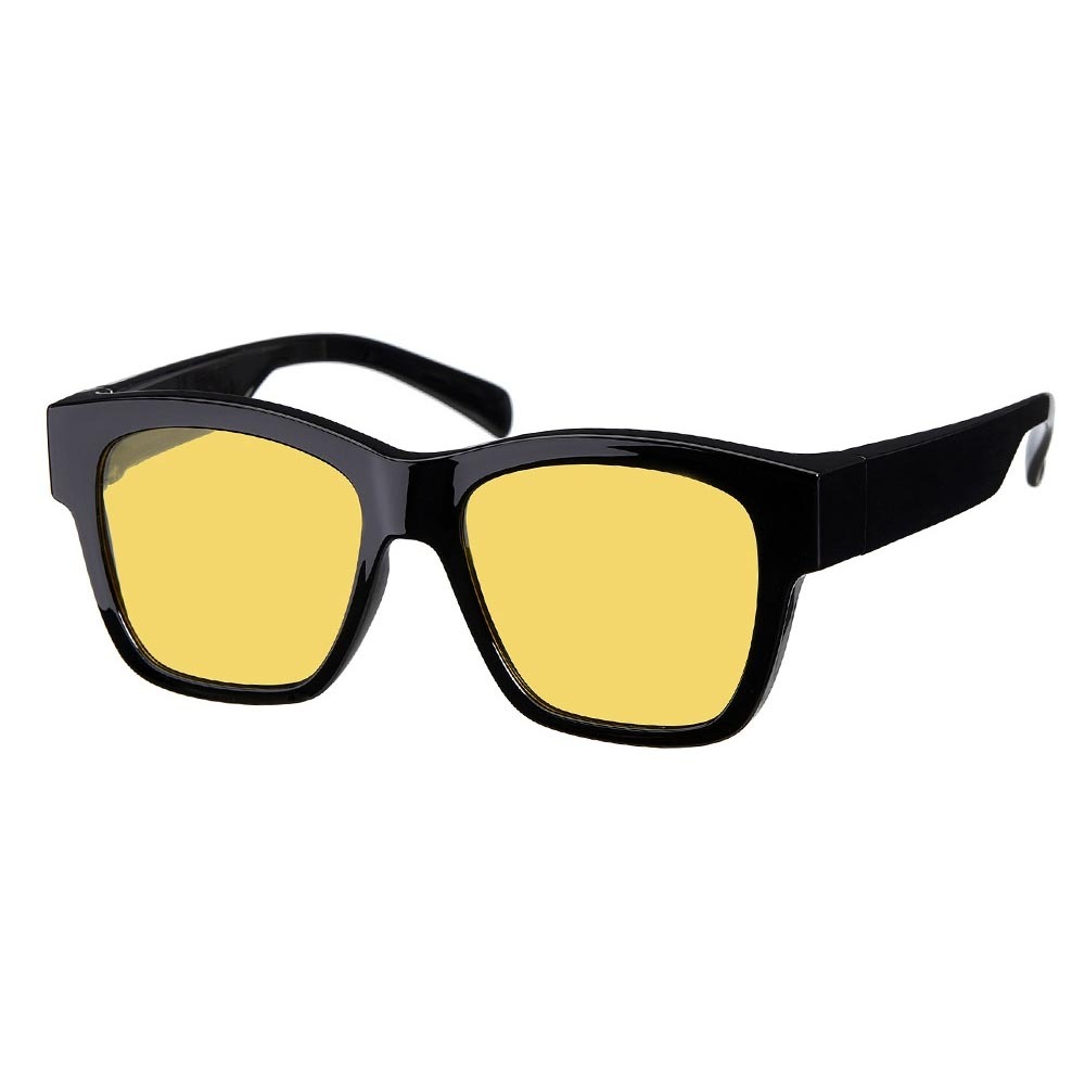 Fit over natbriller til at sætte uden på dine egne briller. Modellen har blank sort stel og sorte linser.