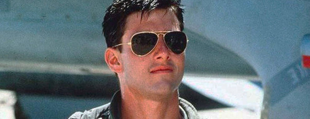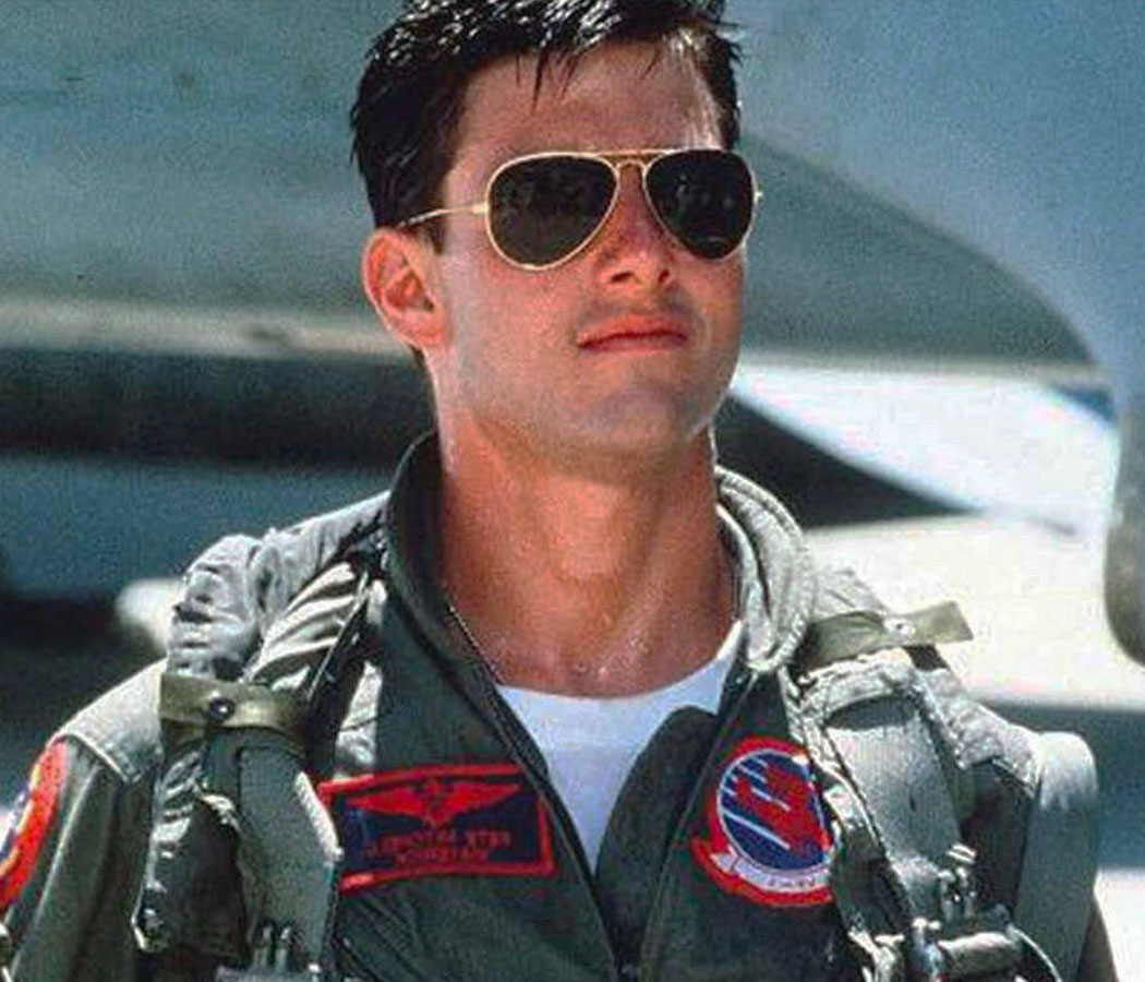 Tom Cruise og Val Kilmer spillede unge piloter og deres roller blev lynhurtigt ikoniske og synonyme med de fede aviator solbriller, som de brugte i filmen under flyvning.