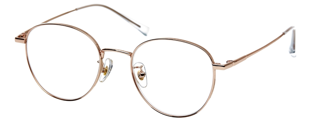 Klassisk model med rundt design og stel i rosenguldfarvet metal. Stængerne er stilfuldt afsluttet med gennemsigtig tip. Stellet er meget fleksibelt, og passer derfor til de fleste hovedstørrelser. Brillen er i meget god kvalitet.