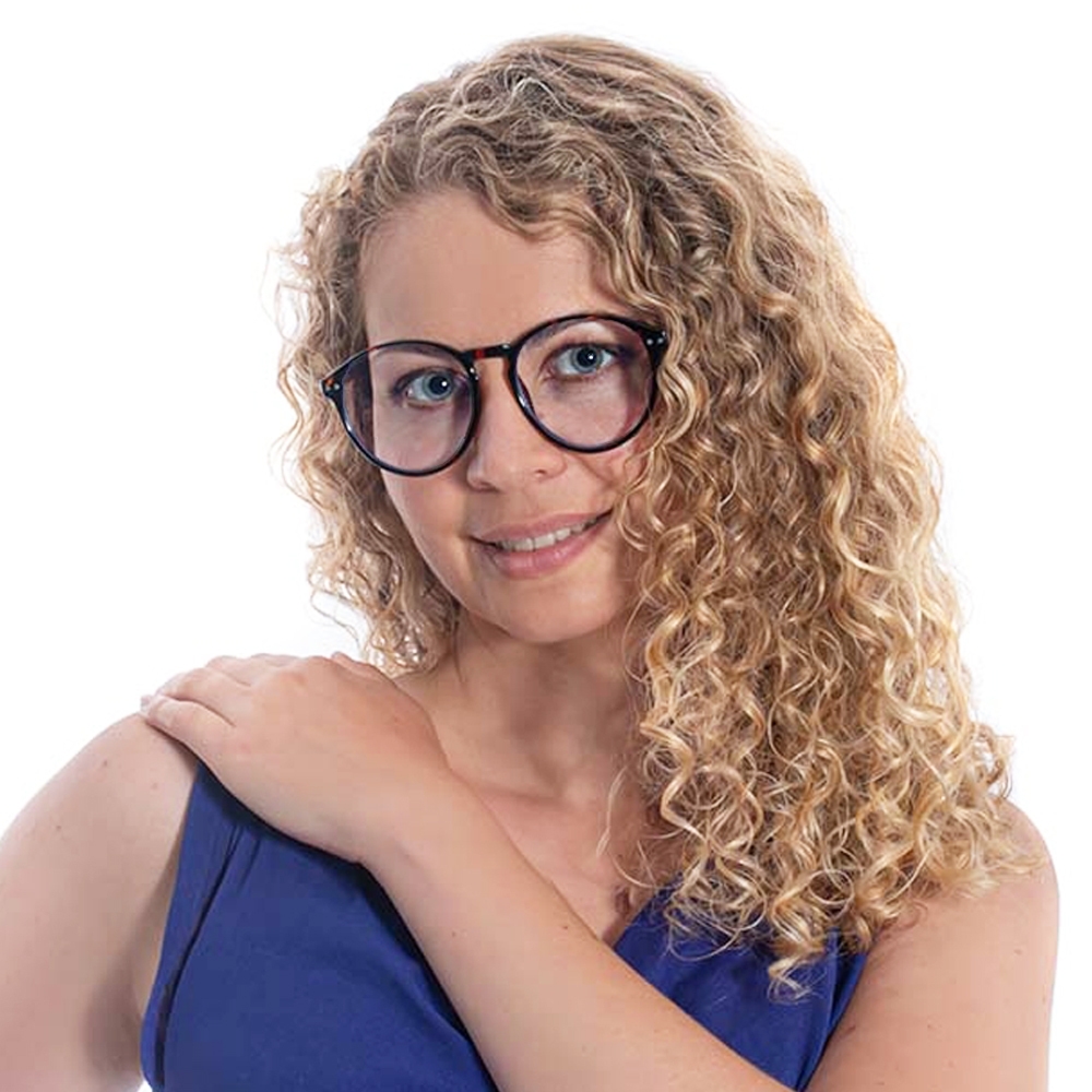 Blue light briller uden styrke i et flot, rundt design, som er meget moderne. Beskytter dine øjne mod stråling fra alle slags skærme.