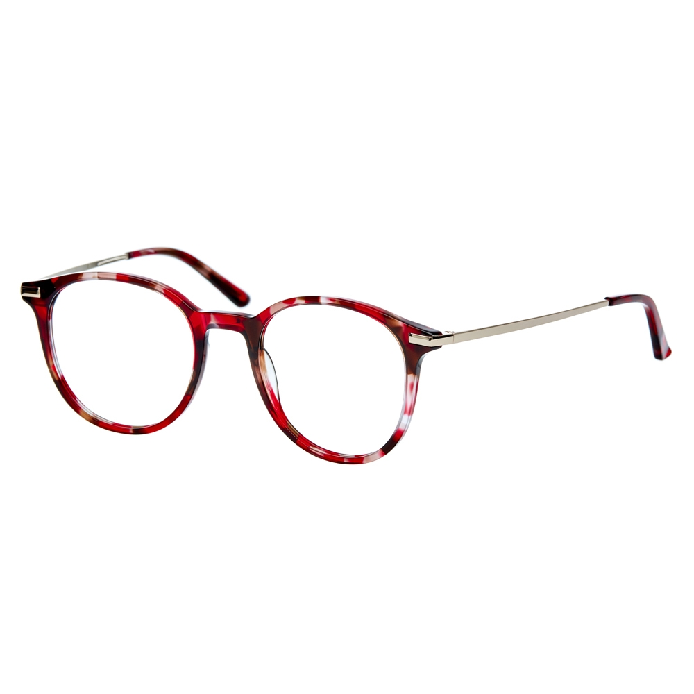 Super kvalitet udført i et moderne design, som passer til de fleste ansigter. De røde farver på stellet er virkelig flotte og komplimenteres af stængerne, som er af sølvfarvet metal.