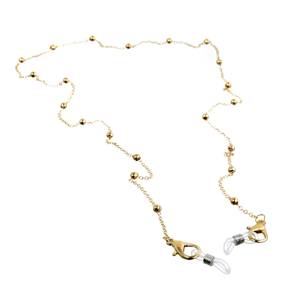 Flot metalperlekæde, som ikke blot er praktisk til at holde styr på brillerne, men også flot at have på. Brillesnoren er justerbar og med gummiender, som sørger for at holde brillen på plads uden at ridse stellet.