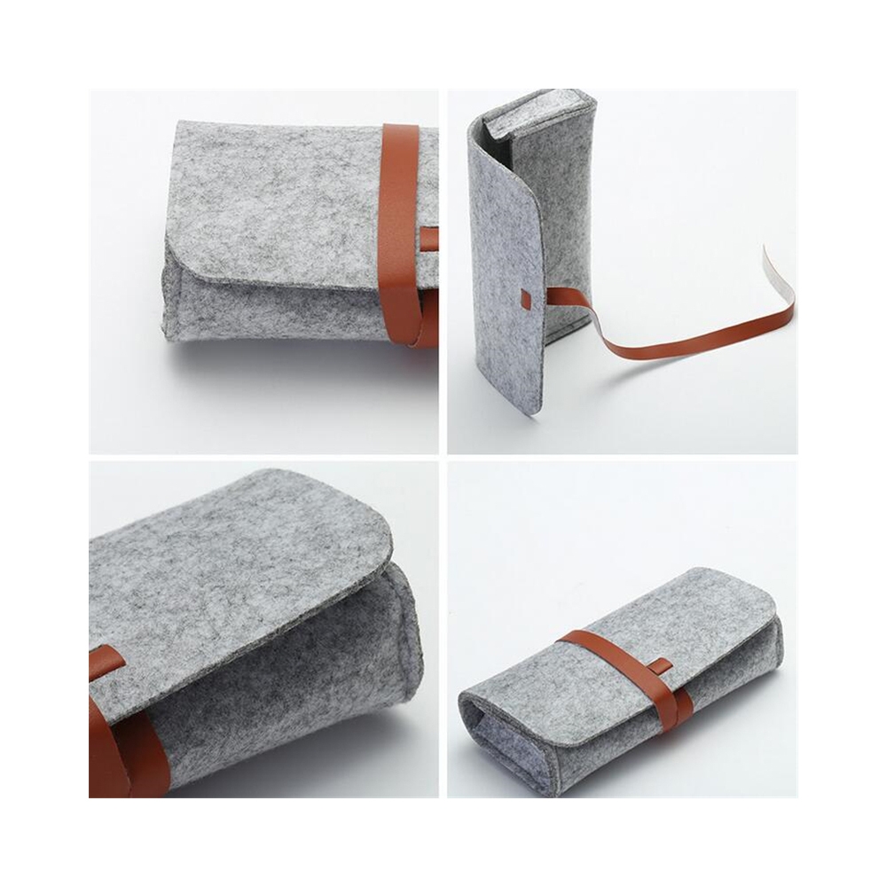 Flot og rummeligt filt etui med P.U. læderluk. Filten er skånsom mod brillen, og beskytter brillen mod ridser og slag. Praktisk og lækkert etui, som også kan rumme de fleste mobiltelefoner, på den måde kan man have alle sine vigtigste accessories samlet et sted!