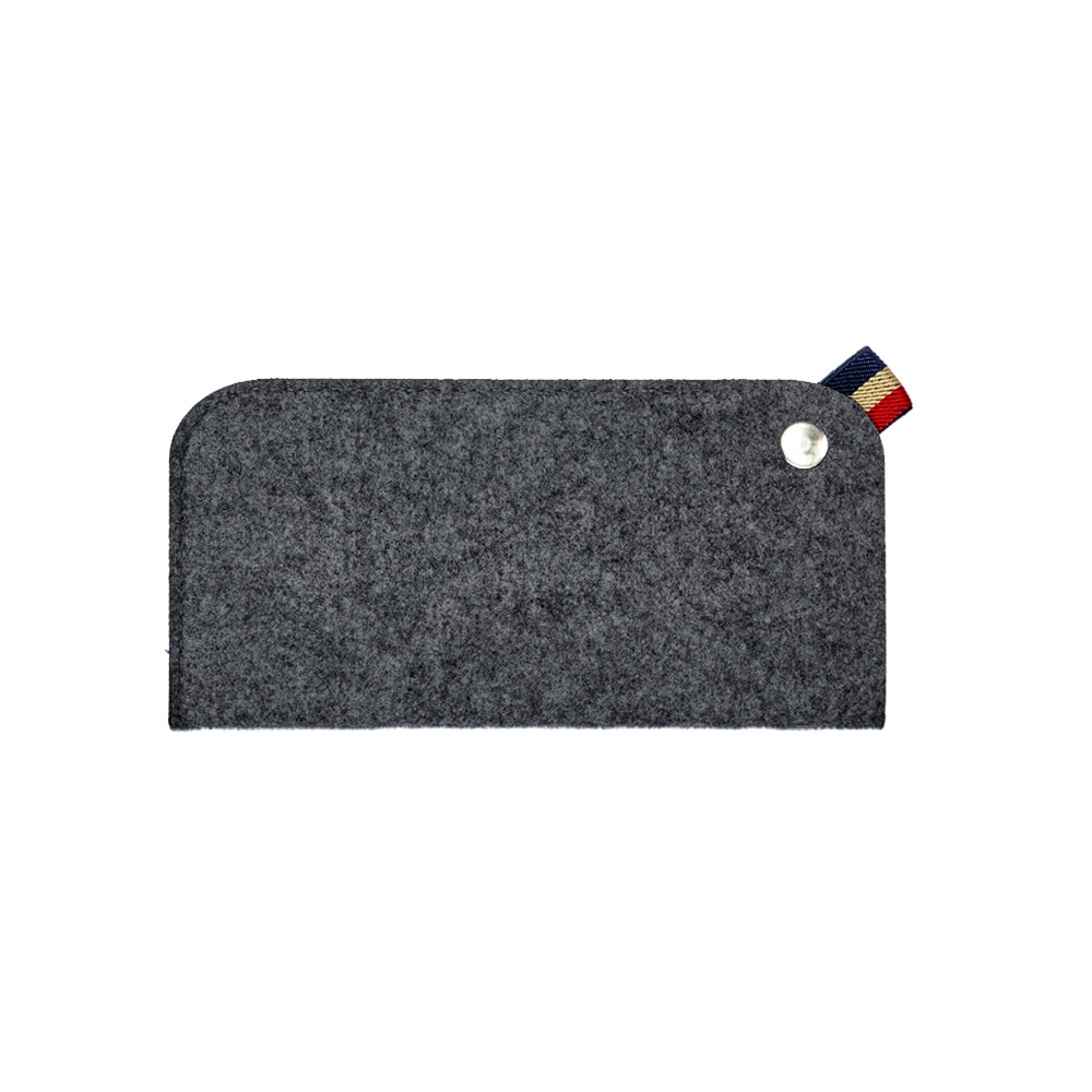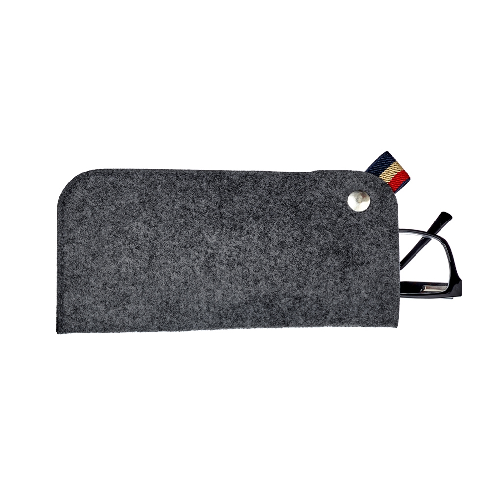 Flot filt etui i mørkegrå med 3-farvet snip. Filten er skånsom mod brillen, og beskytter brillen mod ridser og slag.